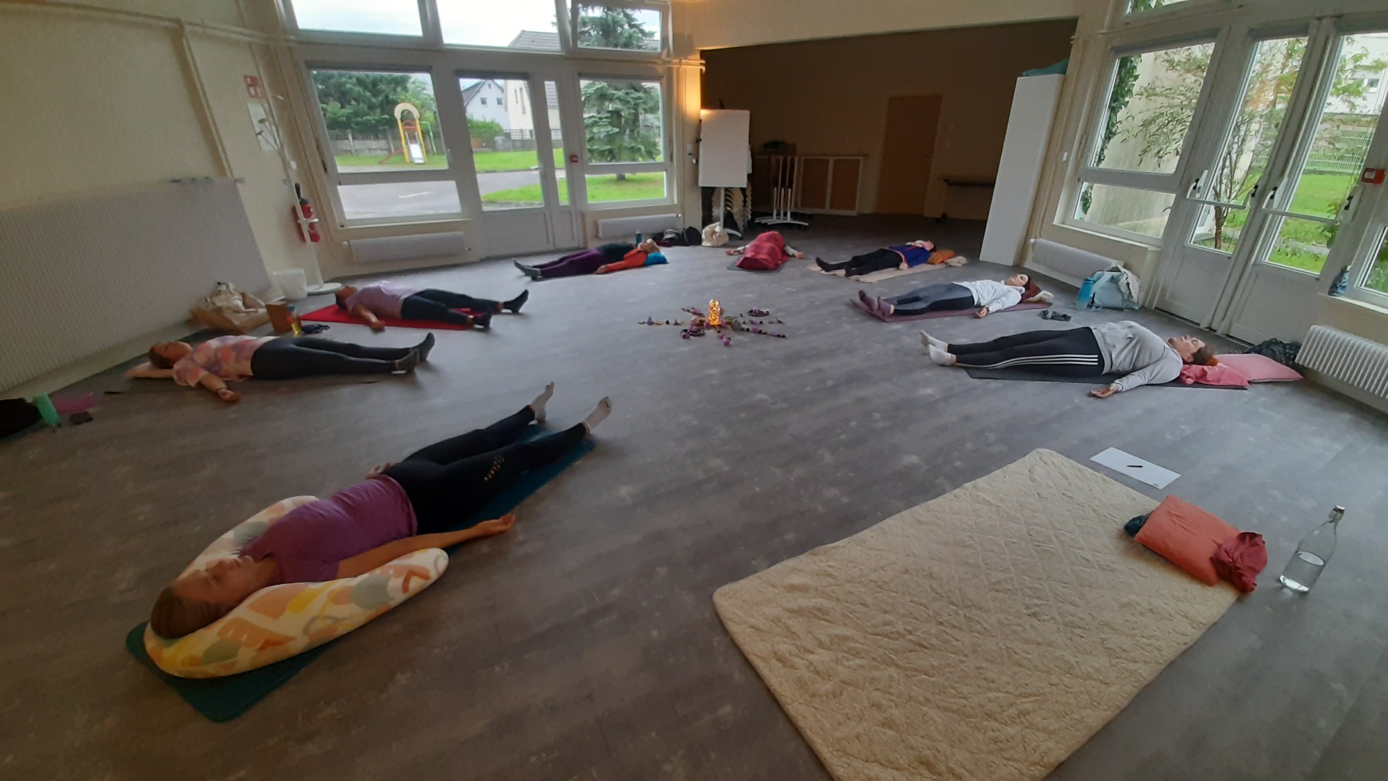 2014, je m'installe à Freiburg en Allemagne pour 6 ans. Je poursuis ma pratique personnelle du yoga tout en découvrant les cercles de chants mantras et la danse des 5 rythmes ou Ecstatic Dance. Je me dis que, sûrement, un jour je vais devenir prof de yoga et je questionne mes profs allemandes : Manjula, ma prof de yoga prénatal car je suis enceinte de ma fille, puis Birgit ma prof de yoga postnatal. Et oui, en Allemagne je découvre une offre de yoga adapté aux futures et jeunes mamans, prise en charge par la sécu !! Des cours collectifs consacrés à la rééducation du périnée, un moment convivial partagé avec son bébé où l'on rencontre d'autres mamans !!
